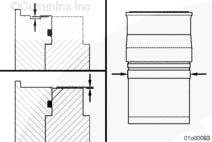 大外徑缸套不會裝入小缸徑缸體中;但是,小外徑缸套可裝入大缸徑缸體中并可能導(dǎo)致故障出現(xiàn)。 |