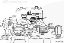 將康明斯ISX15 CM2250發(fā)動(dòng)機(jī)噴油器和壓緊卡箍以正確的方向放入缸蓋中(燃油進(jìn)口朝向高壓燃油接頭)。
