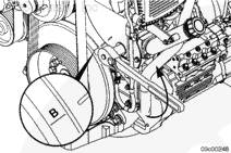 將康明斯ISX15 CM2250發(fā)動(dòng)機(jī)減振器上的A標(biāo)記與齒輪室蓋上的正時(shí)標(biāo)記對(duì)齊。