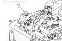 擰緊康明斯ISX15 CM2250發(fā)動(dòng)機(jī)搖臂軸螺栓之前,所有氣門(mén)搖臂軸必須座合在缸蓋支座 (1) 上。
