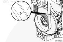 使用康明斯ISX15 CM2250發(fā)動機壓縮機驅(qū)動裝置或盤車裝置沿發(fā)動機旋轉(zhuǎn)方向順時針(從發(fā)動機前方看)盤動發(fā)動機。將減振器上的 A 標記與齒輪室蓋上的指示箭頭對齊。