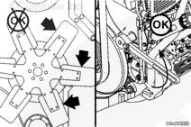 當搖臂和制動器搖臂都松動時,兩個氣門都關(guān)閉。如果兩個氣門沒有關(guān)閉,旋轉(zhuǎn)壓縮機驅(qū)動齒輪一整圈,并使前減振器上的 A 標記再次對準指示箭頭。
