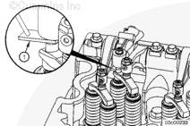 向下壓發(fā)動機制動器搖臂,核實凸輪軸隨動件接觸到凸輪軸。