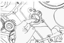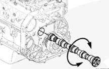 不要強(qiáng)行將凸輪軸裝入凸輪軸孔中,否則會(huì)損壞凸輪軸襯套。