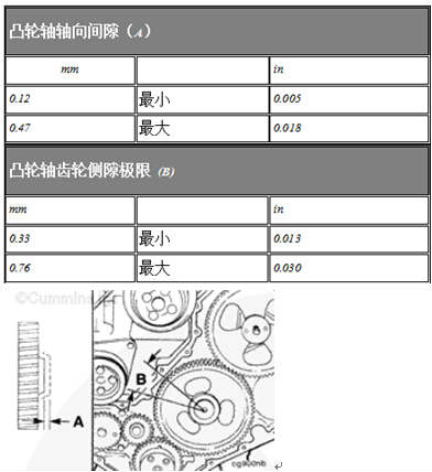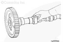 在康明斯B3.9、B4.5、B4.5 RGT 和 B5.9 發(fā)動(dòng)機(jī)凸輪軸齒輪與曲軸齒輪嚙合之前,檢查凸輪軸是否容易旋轉(zhuǎn)。安裝正確時(shí),凸輪軸必須旋轉(zhuǎn)自如。
