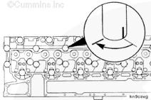 使用螺栓長度尺(零件號(hào) 3823921)檢查所有缸蓋螺栓的長度是否正確。