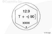 為了精確地使螺栓轉(zhuǎn)動(dòng)到要求的角度,使螺栓與螺栓頭上標(biāo)記的“小圓點(diǎn)”和“窗口”對(duì)正,或者使用扭矩角度計(jì) - 3/4 英寸驅(qū)動(dòng)頭(零件號(hào) 3823878)。