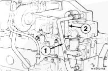 安裝冷卻液供應(yīng)管 (1) 和冷卻液回流管 (2)。