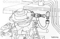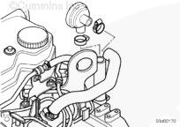 在康明斯B3.9、B4.5、B4.5 RGT 和 B5.9 發(fā)動(dòng)機(jī)閉式曲軸箱通風(fēng)軟管上連接閉式曲軸箱通風(fēng)閥,然后固定軟管卡箍。