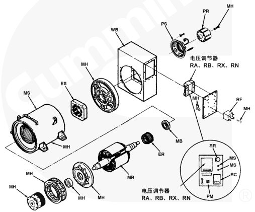 安裝緊固件、保險絲座、柔性連接盤、連接件、風(fēng)扇、端支架、發(fā)電機(jī)殼體 |