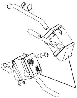 Perkins4016柴油發(fā)動機在發(fā)動機后端安裝了四個渦輪增壓器(1)。每個渦輪增壓囂的渦輪機側(cè)都連接至該渦輪增壓器的排氣歧管。每個渦輪增壓器的壓縮機側(cè)都通過管道與后冷器殼體相連。