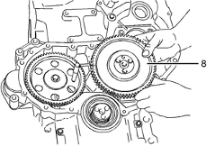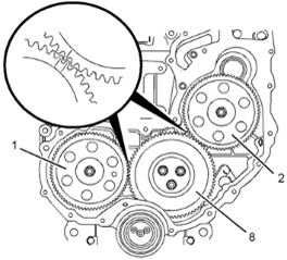 8標(biāo)記齒輪(1)、(2)和(8)以便顯示對(duì)準(zhǔn)位置。請(qǐng)參閱插圖123。