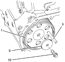 4安裝Perkins1106A/C發(fā)動(dòng)機(jī)凸輪軸齒輪(1)。松散地安裝Perkins1106A/C發(fā)動(dòng)機(jī)凸輪軸齒輪的螺栓(10)和墊圈(9)。請(qǐng)參閱《Perkins1106A/C發(fā)動(dòng)機(jī)拆解和組裝》,“Perkins1106A/C發(fā)動(dòng)機(jī)凸輪軸齒輪-拆卸和安裝”以了解正確程序。