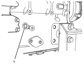 2確保已將工具(C)安裝在Perkins1106A/C發(fā)動(dòng)機(jī)缸體的孔(Y)中。使用工具(C)將Perkins1106A/C發(fā)動(dòng)機(jī)曲軸鎖定到位。
