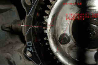 7.懷疑到曲軸正時(shí)齒輪移位,于是拆檢齒輪室,發(fā)現(xiàn)曲軸正時(shí)齒輪已經(jīng)崩齒且移位圖