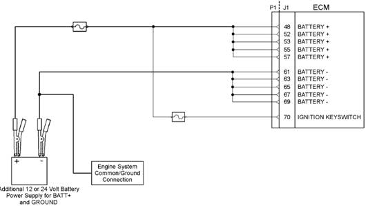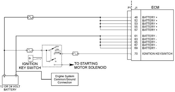 在Perkins1204e-e44tta和1206e-e66ta點(diǎn)火的P1連接器的引腳位置的按鍵開(kāi)關(guān)和電池供電電路