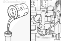 排放康明斯發(fā)動機冷卻液。參考第 8 節(jié)中的步驟 008-018(冷卻系統(tǒng))。