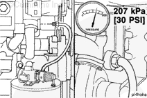 使用一臺能夠連續(xù)提供205 kPa [30 psi]壓力的壓力泵。將泵連接至發(fā)動機機油濾清器座的前部。