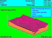 發(fā)動機(jī)的ECM內(nèi)有多個三維圖譜. 如圖所示,當(dāng)各個輸入信號的參數(shù)值確定后,在這種工況下的發(fā)動機(jī)的正時也就確定了.