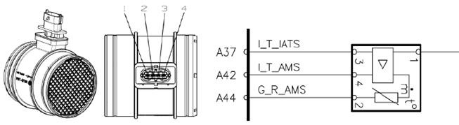 1-附加溫度傳感器(部分車型懸空不用);2-+12V加熱電源;3-接地;4-+5V參考電壓;5-信號(hào)輸出